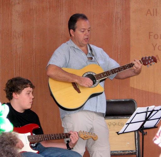Easter in Costa Rica hits during the dry season, but gets close to rainy season, which means the sky has beautiful clouds against a Carolina blue background. We celebrated Easter with Americans, Canadians, Costa Ricans and Guatemalans. Benjamin, who just received an electric guitar as a gift, played with me leading music this morning. We have seven songs in our repetoire, so they sang what we could play. Our message was brought by Bob Hanna with TEAM and was followed by a rich outlay of Costa Rican and American foods for breakfast. Although a sunrise service is part of my culture, it is strange by Costa Rican standards. We invited neighbors who thought we were nuts. But like it or not, they heard the worship music.