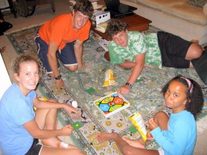 25 AugThe Duggan life gets a little crazy sometimes. This summer we had only 36 hours with the whole family together although we did get more time with each child along the way. So what do our kids choose to do when they are together? Play TiddlyWinks of course! The laughter and cackling were cracking us up.
