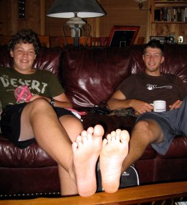 Ben has grown quickly this year, and in our short time with Matthew, we did a little foot size comparison.Ben is still shorter, but if the size of his foot is any indication, it won’t be long before he outgrows his big brother and dad.