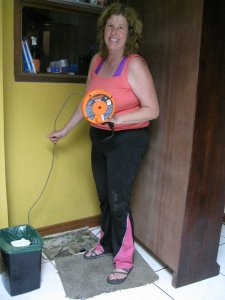 Day 13- Rain continues and in addition to Anna’s continued fever, there is a flood in the kitchen…Ilsias and I use the rotorooter plumbing tool and try and get the clog—doesn’t completely work, and the additional rain continues to back the sewage into the kitchen—100% sulfuric acid and buckets of hot water eventually work