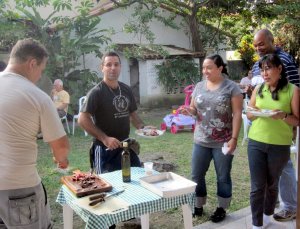 One common theme that seems to cross cultures is gathering around food. No matter where I travel, eating with someone is one of the key ways of entering their world and sharing something that has a lot of meaning for them. In Brazil, that is no hardship! If you love meat, you’d love Brazilian food. There’s nothing like a Brazilian BBQ to fill you up but keep you wishing for more. Here one of our E-Free pastors opened his home to host us to one of his famous pecanhya feasts. Sausage, steak, chicken, grilled pineapple and grilled bannana just kept coming. What a treat!
