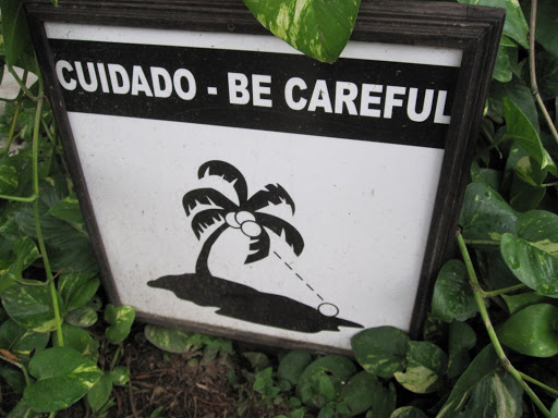On a recent trek in the northern part of our adopted country we did some pastoral training at a local hotel. As we walked to our meeting room this sign caught our attention. A falling coconut can do some damage to unprotected heads, but we didn’t know that coconut palms in this area were a bit more aggressive. It appears that the palm rears back like a catapult and flings its projectile far beyond the reach of normal gravity’s pull. Or perhaps we may be interpreting the sign wrong?