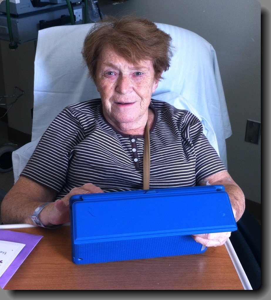 Two days after coming home my mom is getting the hang of operating in her familiar environment again. It will be a long process of strengthening her muscles and her lungs as well as numerous home health, physical therapy, and physician visits. She tires easily, so please call her to arrange a visit and keep them to fifteen minutes or less. We don’t want to discourage visitors at all though, so don’t hesitate to arrange a time.